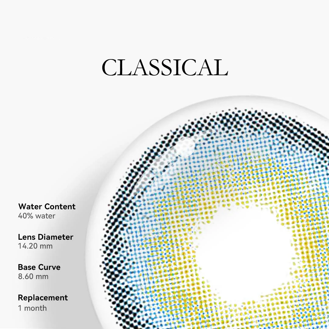 Classical Spring Blue Contacts Making your eyes sparkle and shine, NO1Pretty Classical Spring Blue Colored Contact Lenses were designed to blend beautifully with any eye color. Best choice for those who want to enhance their eyes effortlessly. Light to translucent streaks allows your natural eye color to peek through for an elevated vivid look even with nude makeup style.🌸